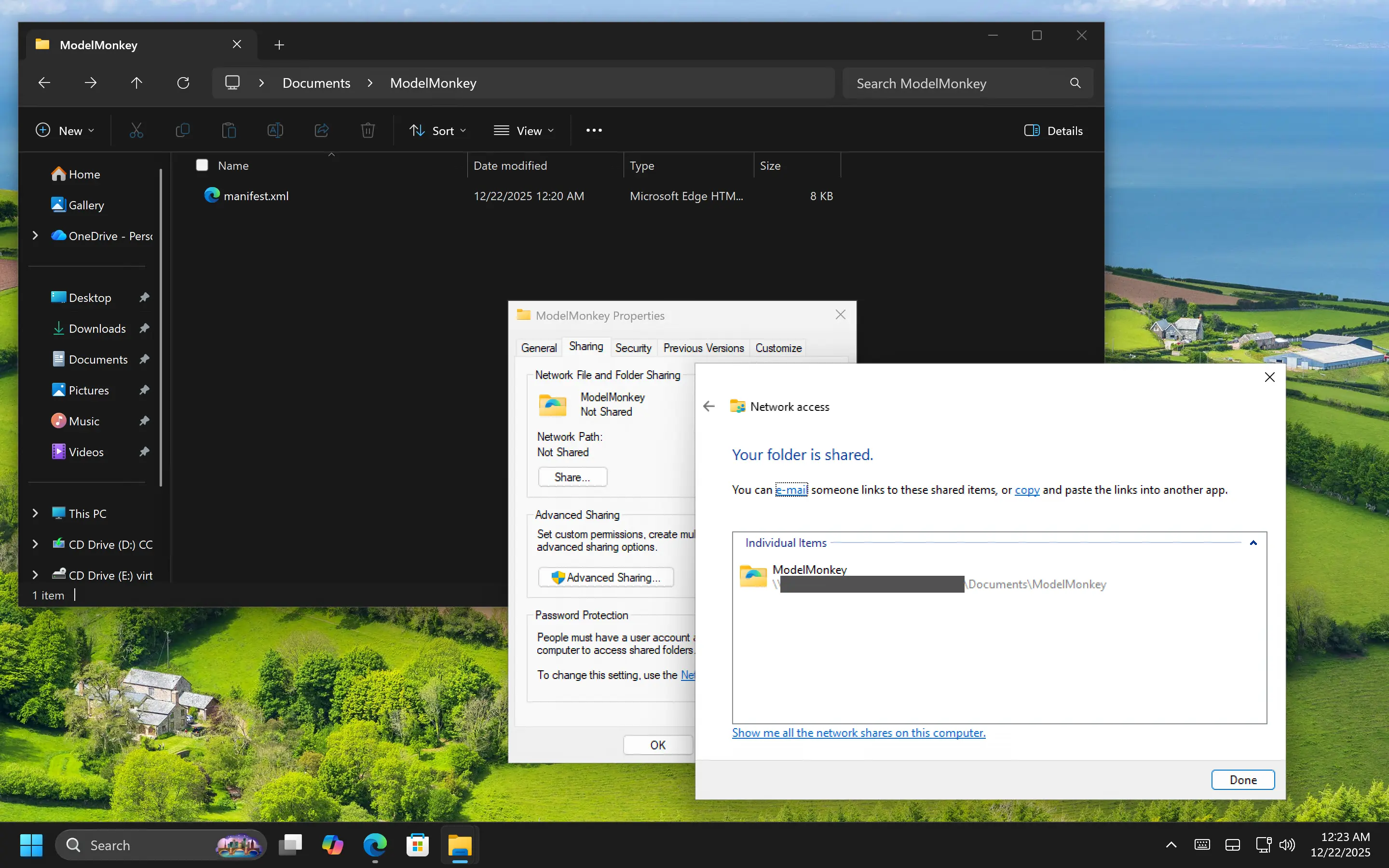 - Click Share, then note the network path shown (e.g.,