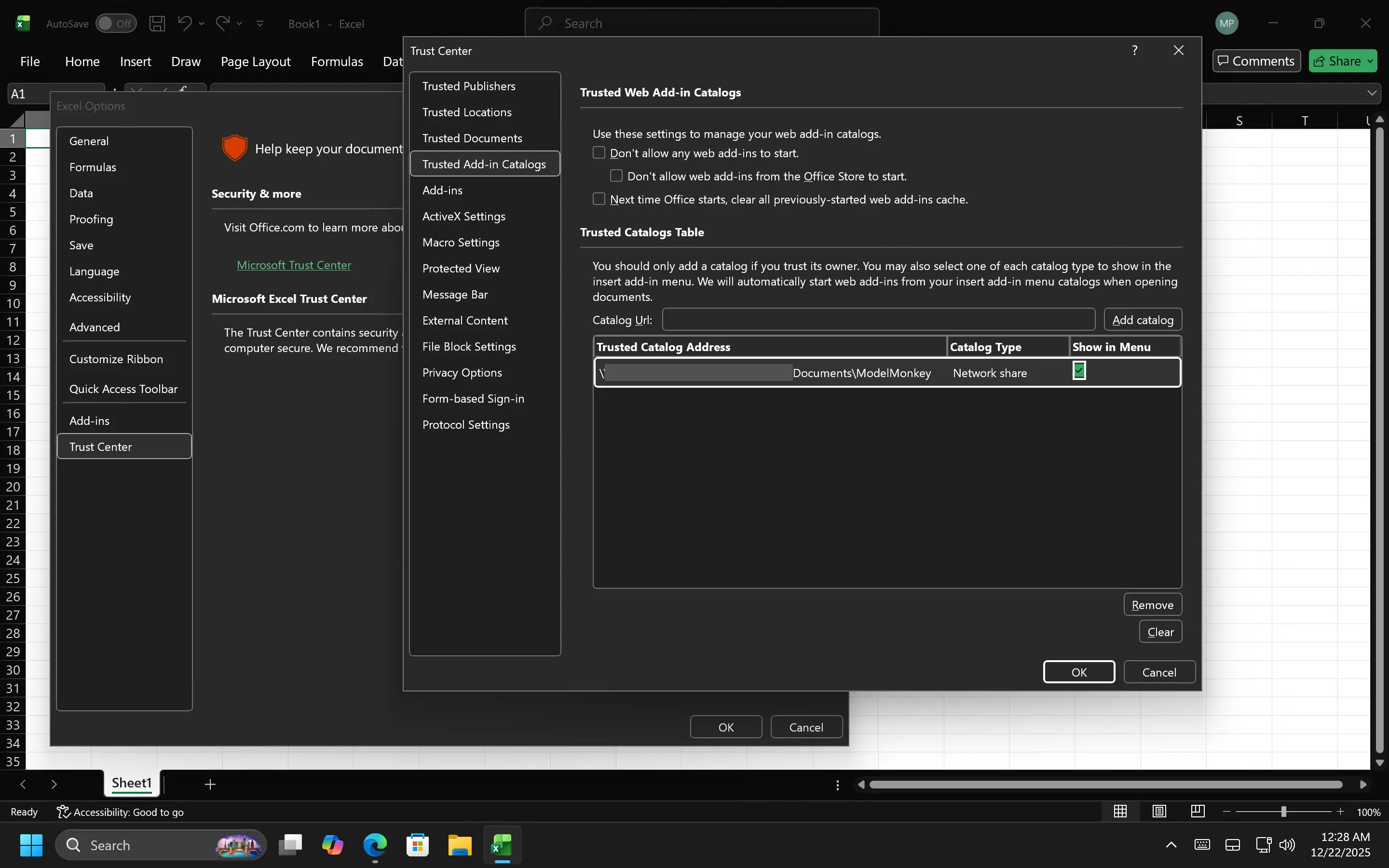 - Select Trusted Add-in Catalogs